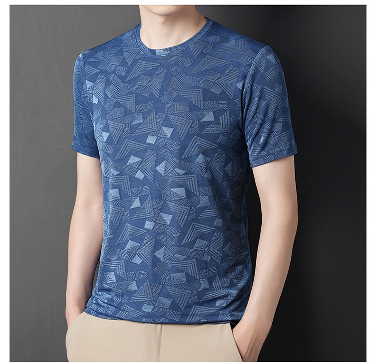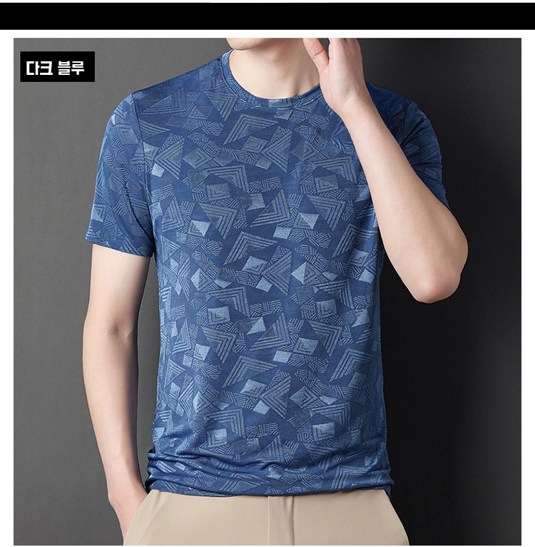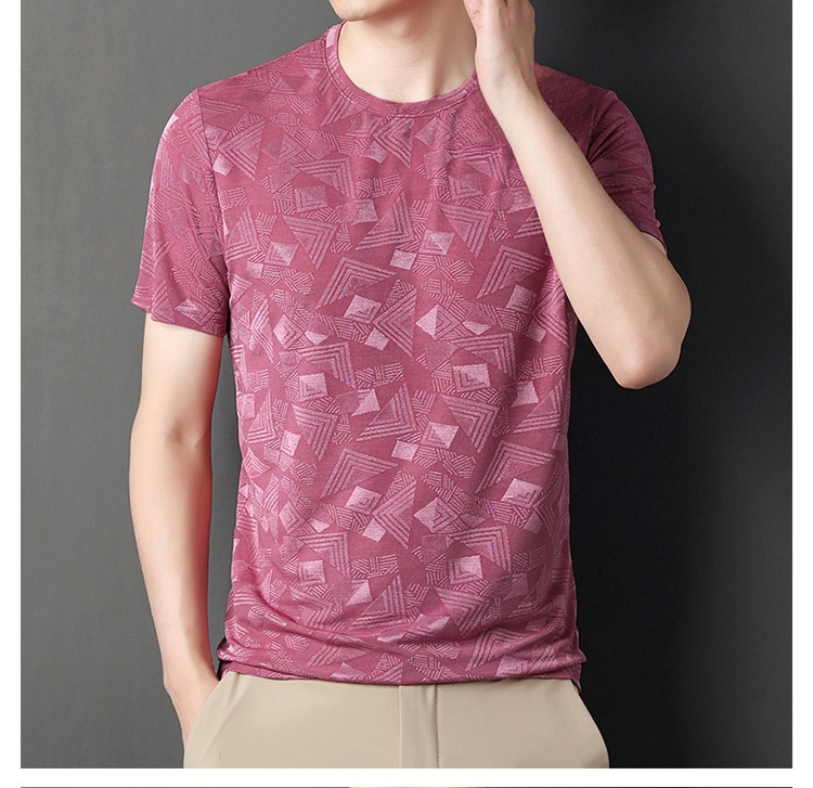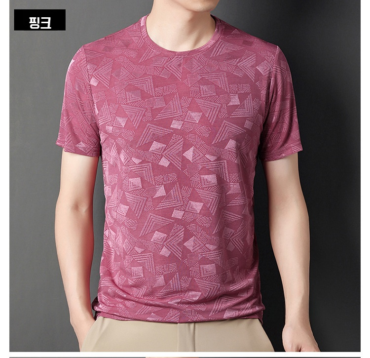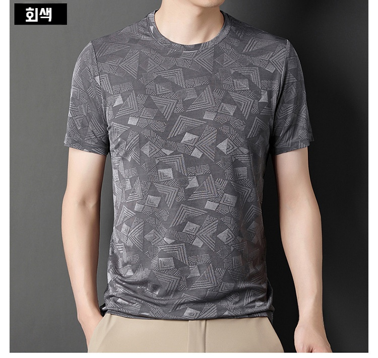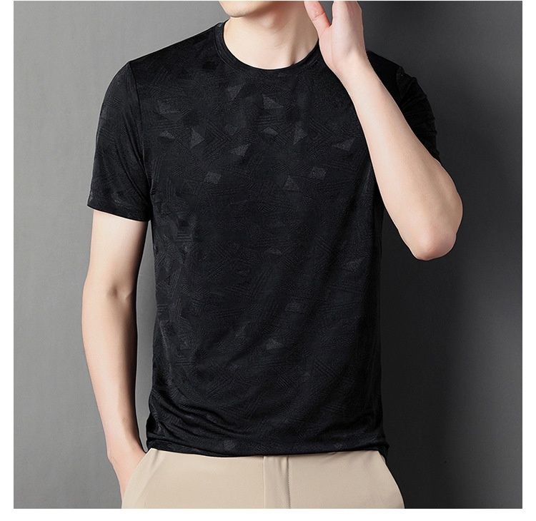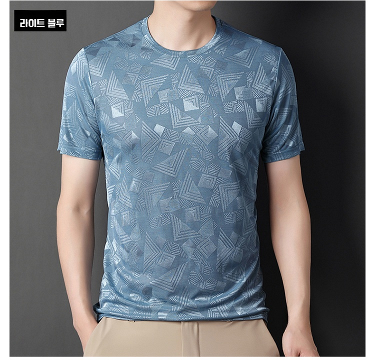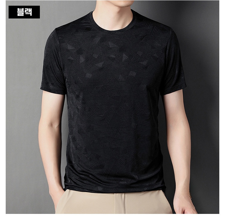 뽕나무 실크 자카드 남성 반팔티셔츠 여름 루즈핏 캐주얼 반팔티셔츠 이너 반팔티셔츠