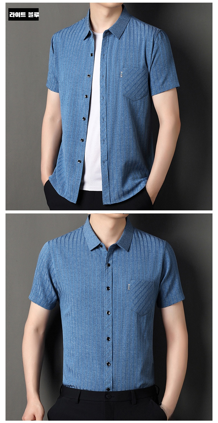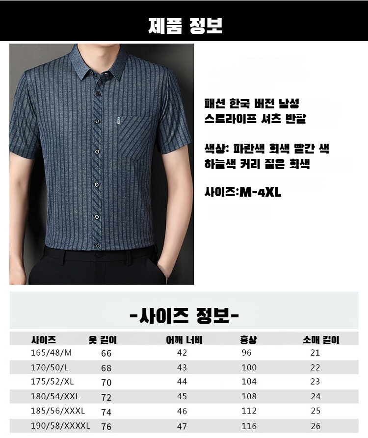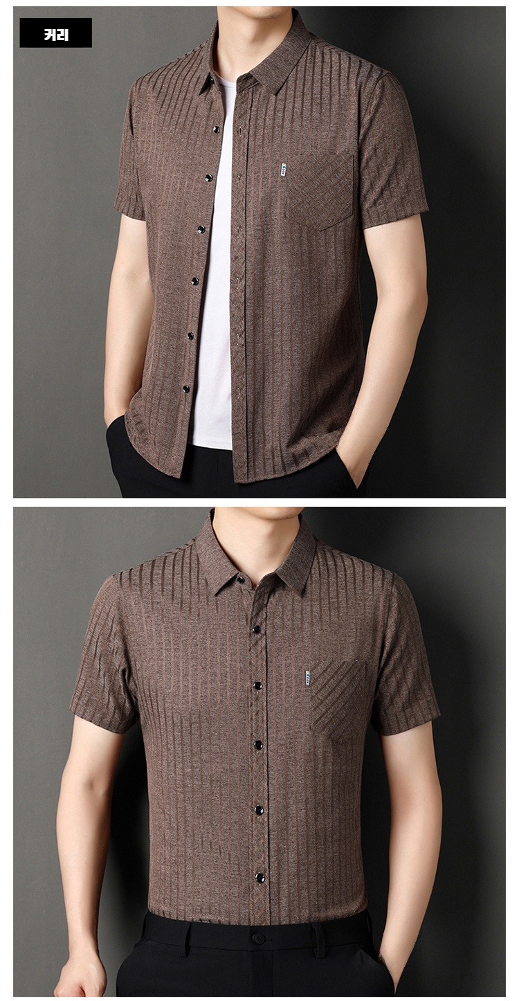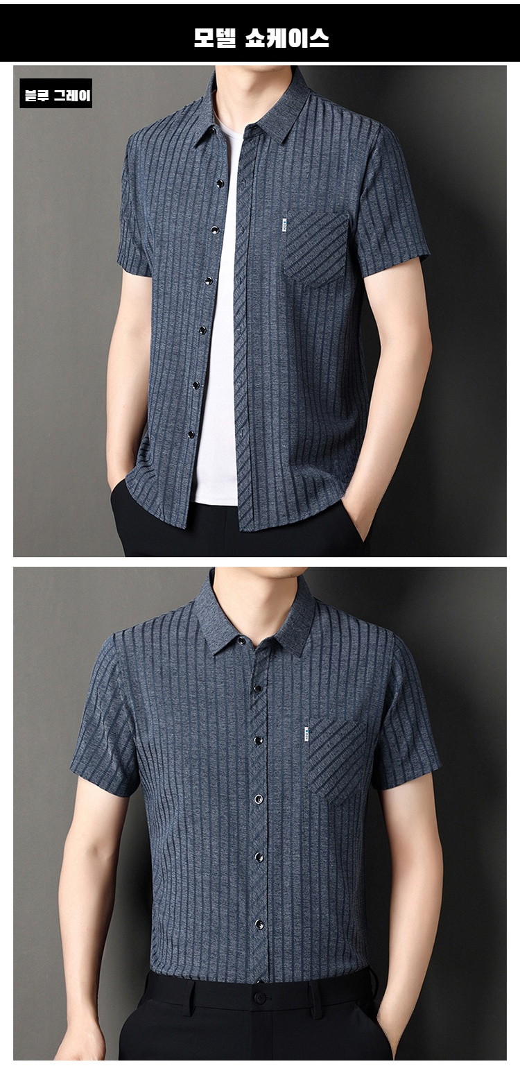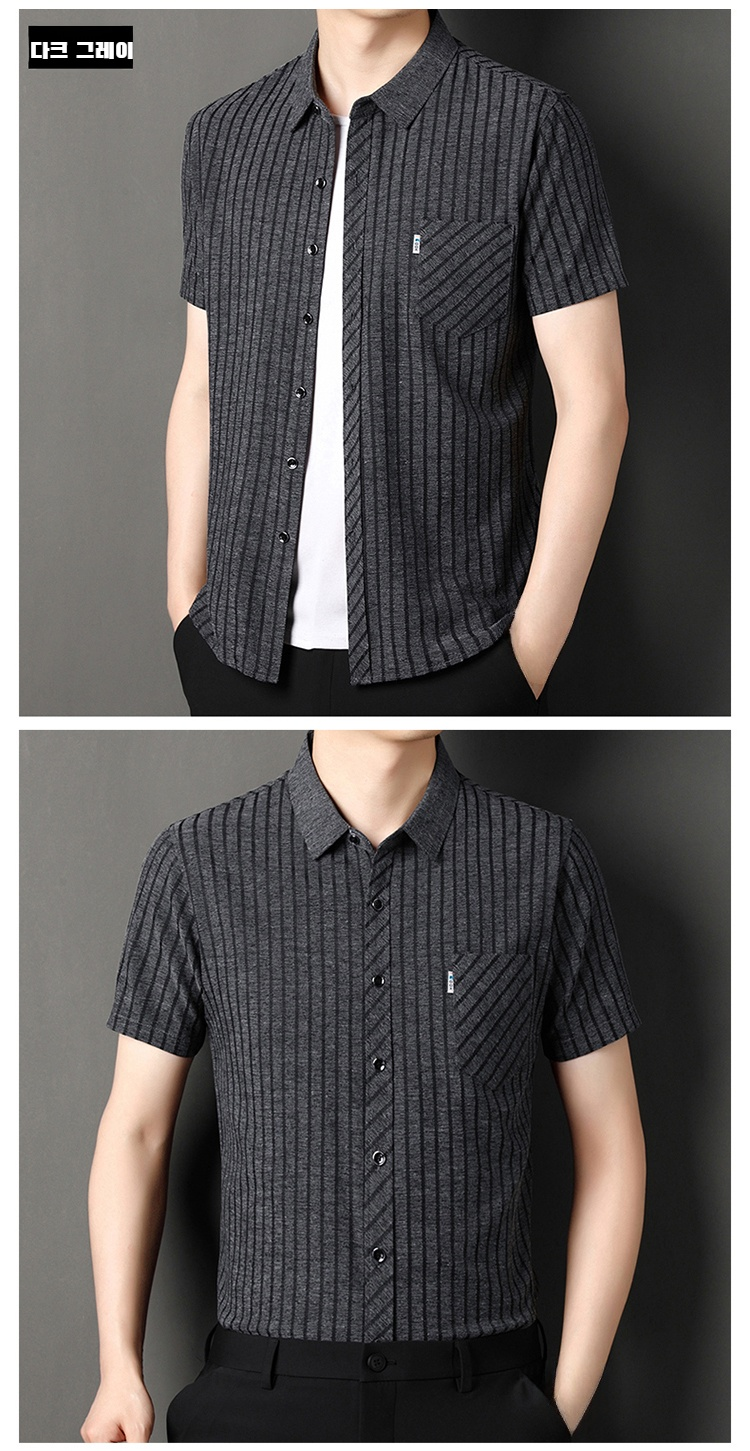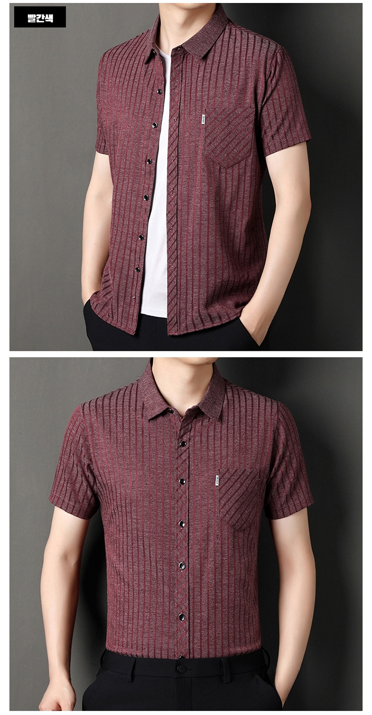 여름용 남성 반팔 셔츠 스트라이프 패턴